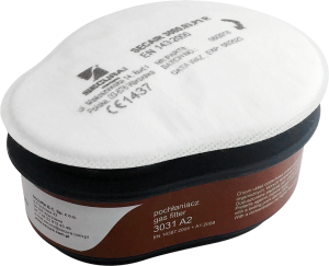 - po skompletowaniu z półmaską lub maską, chroni układ oddechowy przed gazami i parami substancji organicznych i nieorganicznych, parami i gazami kwaśnymi, amoniakiem i jego pochodnymi organicznymi, a także mieszaninami w/w substancji