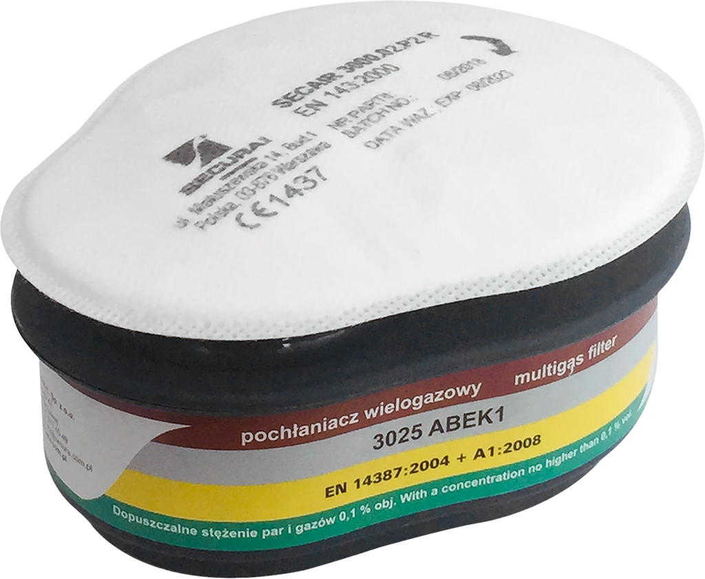 - w skład zestawu wchodzą: dwa pochłaniacze 3025 ABEK1 + dwa filtry SECAIR 3000.02 P2 R