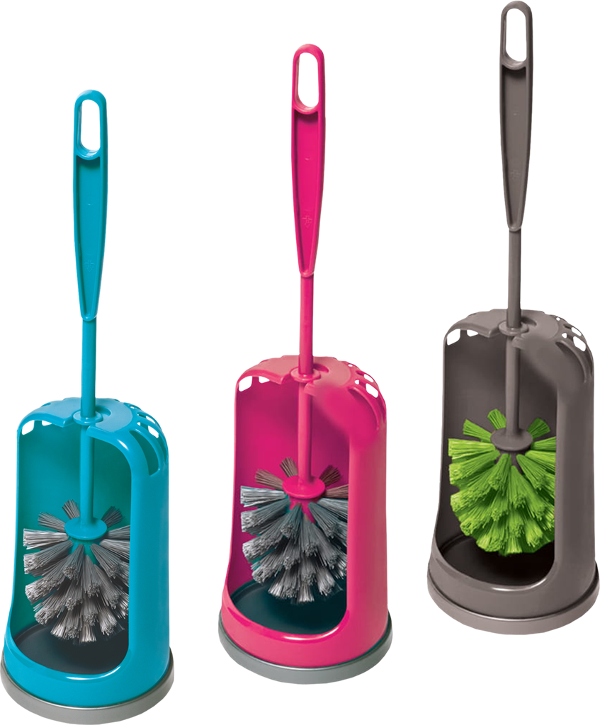 - ergonomiczna szczotka podwieszona na podstawce, nie pozostaje w ściekającej wodzie, jak w kompletach z kubkiem