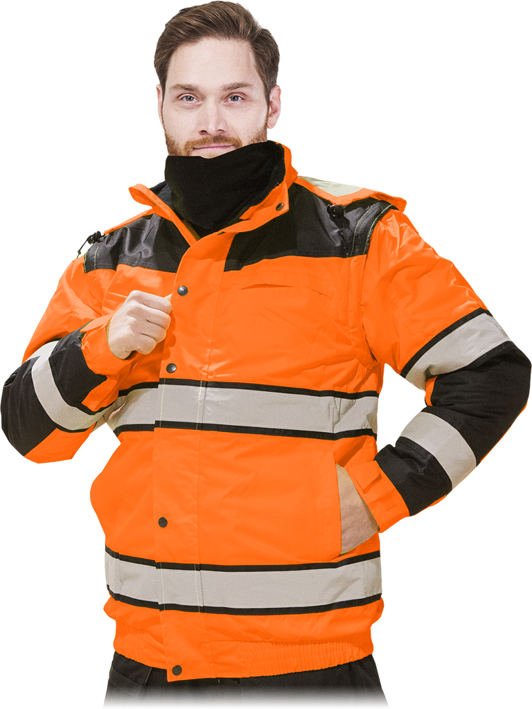 - tkanina we fluorescencyjnym kolorze i pasy odblaskowe zwiększają widoczność