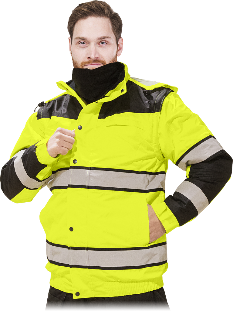 - tkanina we fluorescencyjnym kolorze i pasy odblaskowe zwiększają widoczność