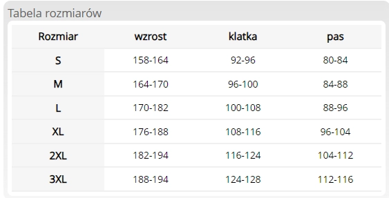 - wyściółka 100% poliester o gramaturze 150 g/m2, na rękawach wyściółka o gramaturze 120 g/m2