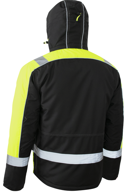 Elementy Odblaskowe: Pasy odblaskowe na tułowiu, rękawach i kapturze zwiększają widoczność i bezpieczeństwo w trudnych warunkach.