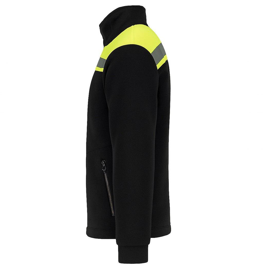 Górna część bluzy została wykonana w jaskrawym seledynowym kolorze z odblaskowym paskiem, dzięki czemu zwiększa widoczność użytkownika po zmroku oraz w trudnych warunkach pogodowych. To świetne rozwiązanie dla osób pracujących na zewnątrz, na budowie, w transporcie czy logistyce.