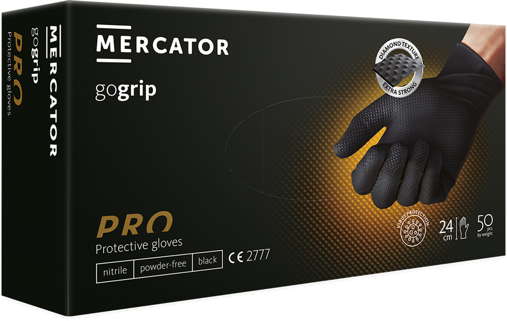 Rękawice jednorazowe GoGrip czarne Mercator RMM-PGRIPGO B