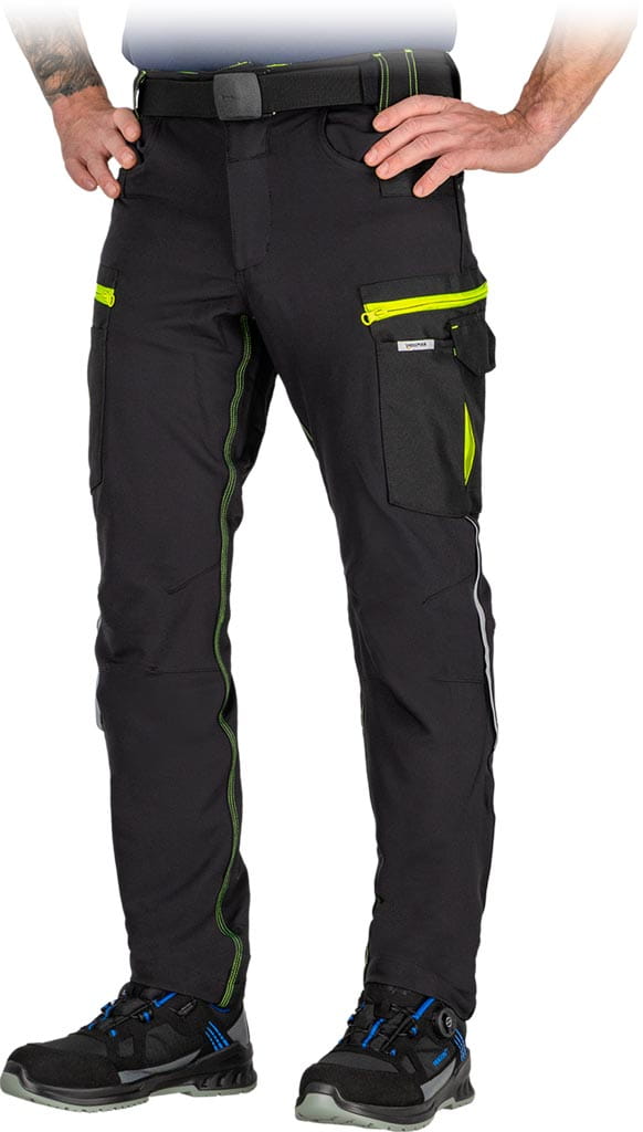 - kieszenie na nogawkach, w tym jedna podwójna oraz jedna potrójna z przegródką na telefon komórkowy zapinaną na rzep