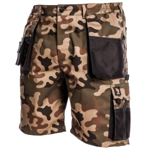 Spodnie krótkie PROMAN. Spodnie wykonane w 65% z poliestru i 35% bawełny o gramaturze 260g/m2. 8 funkcjonalnych kieszeni w tym podwójne kieszenie przednie z kieszenią na calówkę, kieszeń typu bojówka. Wzmocnienia z materiału na kieszeniach zabezpieczające przed przetarciami. Rygle wzmacniające i podwójne szwy zwiększające wytrzymałość. Rozmiary od 48-62. EN ISO 13688:2013