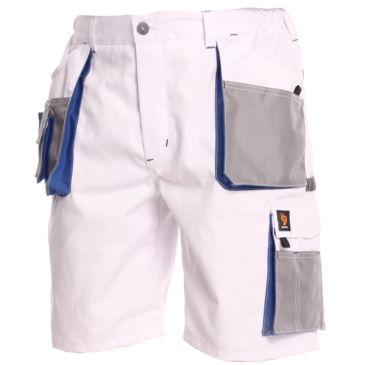 Spodnie krótkie PROMAN. Spodnie wykonane w 65% z poliestru i 35% bawełny o gramaturze 290g/m2 (spodnie w kolorze białym, niebieskim, szarym i jasnoszarym) oraz 260g/m2 (moro, safari, żółte hv). 8 funkcjonalnych kieszeni w tym podwójne kieszenie przednie z kieszenią na calówkę, kieszeń typu bojówka. Wzmocnienia z materiału na kieszeniach zabezpieczające przed przetarciami. Rygle wzmacniające i podwójne szwy zwiększające wytrzymałość. Rozmiary od 48-62. EN ISO 13688:2013