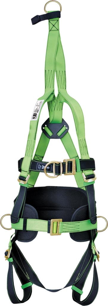 - W górnej części nad głową, jeden pierścień w kształcie litery D, wykonany ze stali o dużej wytrzymałości, służący do zamocowania lin ratowniczych oraz innych akcesoriów.